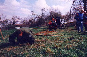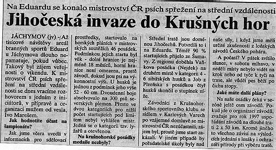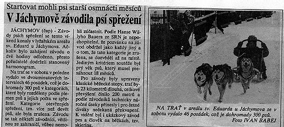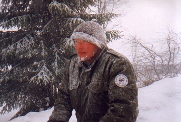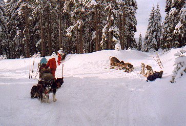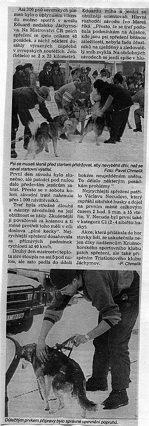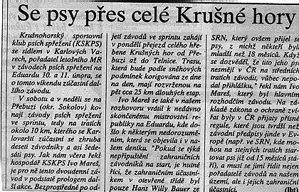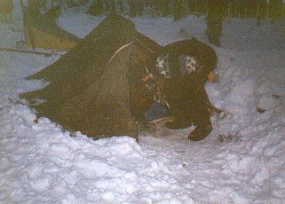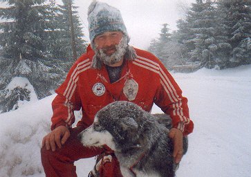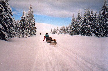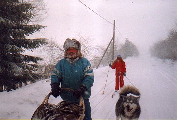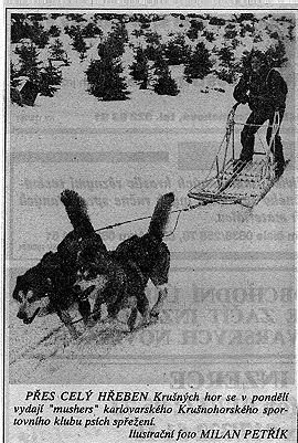 Na generální přípravu zimního přejezdu se nás sešlo málo. Ostatní se zřejmě zalekli zimy (i když v noci bylo pouhých -5°C) a sněhového nadělení. Vyjížděli jsme v sobotu ráno z Hřebečné směr státní hranice. Cesty byly čerstvě zasněžené a krásně prohrnuté. Jako předjezdec s námi jel na půl dne Tonda Vaněk - bývalý člen klubu. K večeru se oddělil a vrátil domů na noční. My jsme se kolem půl páté kempli v lese nad Potůčkama. Dřeva na oheň bylo dost a tak bylo i teplo. S Ivošem jela dcera Míša, která mu znárodnila saně a Ivoš jel jako doprovod na běžkách.