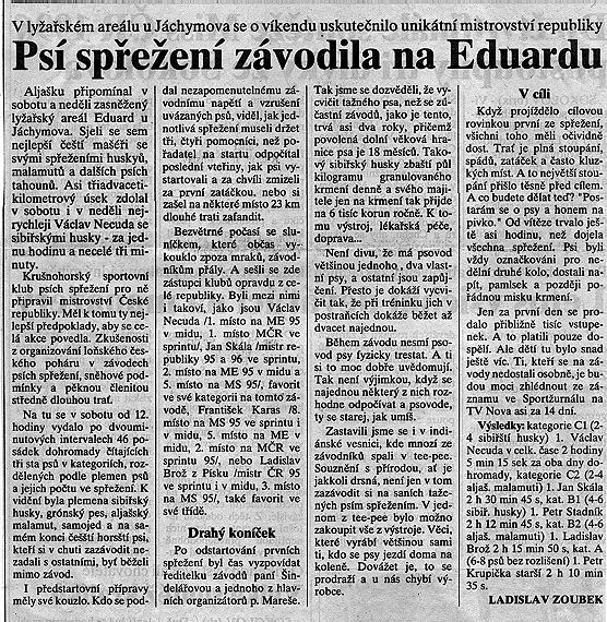 Nejvíce se povedla večerní country šou. Zpívali všichni, tancovalo se i na stole a moc jsme se při tom pobavili. Ještě před zahájením večerní zábavy jsme vyhodnotili a ocenili nejlepší závodníky klubu a zhodnotili expedici Krušné Hory. Myslím, že vládla všeobecná spokojenost a už se těšíme na příští zimu.