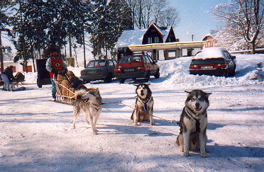 Bublava - hotel Sport. Tři psi, jedny sáně a před nimi 160 km trailu.