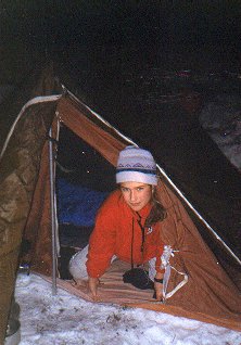 Míšino první stanování v zimě. Přečkala ho perfektně a ani jí moc nevadilo, že jsme pili čaj s jehličím.