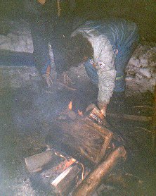Ohnivák Milan se spolu s Vaškem starali o oheň, na kterém se rozpouštěl sníh ke krmení našich "tažných psů". Občas se něco připálilo, ale to prý patří k plánovaným ztrátám!