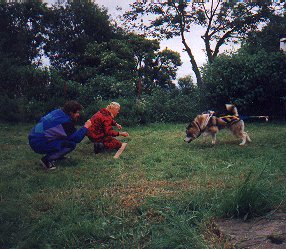 Na chalupě se nás už v pátek sešlo poměrně dost. Počasí sice nevěstilo nic dobrého, přesto jsme se na ježdění těšili. Nejdříve jsme si v neutuchajícím dešti prošli trať a pak jsme vyrazili. Psi se neuvěřitelně snažili, vždyť pro některé to bylo první mašování po létě. Jeli jsme jen 5 km, ale i to vtom vlhku bohatě stačilo