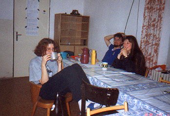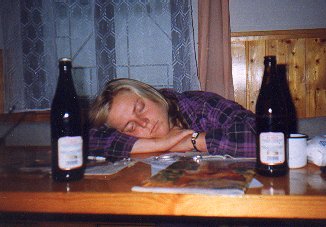Kamarádka Jana měla smolný den. K pobavení všech odešla pro něco do auta a vrátila se jako vodník - spadla do nádržky na vodu před chalupou. Pečlivě se převlékla a šla do kýble pro vodu na záchod. Po chvíli se opět objevila ve dveřích jako vodník Volšoveček s tím, že jí uklouzly nohy. Naštěstí se ani jednou nic horšího nestalo. Janě jsme půjčili věci (každý něco) a u krbu se sušilo a sušilo.