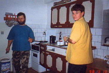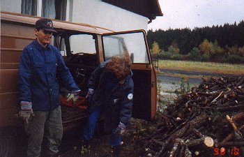 Během dopoledne jsme se postupně sjeli skoro všichni. Prošli jsme si kus trati, nasbírali nějaké houby a vrhli se na práci, kterou pro nás vymyslel Broněk. Někdo bílil a uklízel kuchyň a vstupní halu v Bažině (Eduardská hospoda), někdo řezal a odvážel dříví na zimu. Ubytováni jsme byli v cílovém baráku, kde budeme i o závodech. Pěkně jsme si zatopili a byla pohoda. Počasí se opět moc neukázalo, střídavě pršelo nebo byla mlha.
