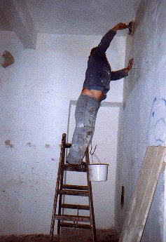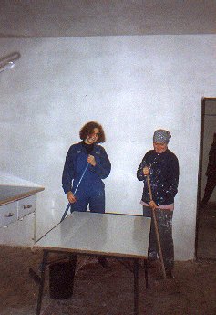 Roman a Líba v pracovním procesu. Roman - asi mám ty ruce z překližky, jak se mi namočí, tak se mi zkroutí.