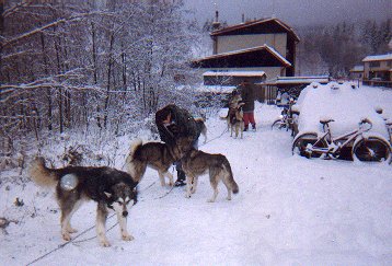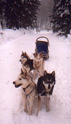 V sobotu 12.- 12. 1998 jsme se vydali na delší výlet podél Česko - Německé hranice. Tentokrát nás bylo docela dost - Dáša, Milan, Ivoš, Milan Roubíček, Roman a Hubert. Celkem tedy pět spřežení a jeden skijöringista. Cesta byla perfektní a psi šlapali jako hodinky. Během cesty jsme se trochu rozptýlili a tak jsme se dohodli, že další sraz bude v Horní Blatné v restauraci U Medvěda. Tady jsme poobědvali, psi si orazili a už skoro za šera jsme vyrazili domů.