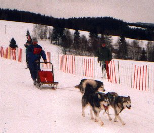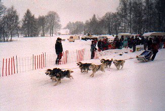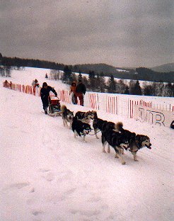 Jelikož Bublava je poměrně blízko, vyrazili jsme ve čtyřech - Milan Roubíček, Ivo Mareš a Dáša a Milan Šindelářovi na závody. Dílem náhody zrovna na Mistrovství republiky. Trať byla velice obtížná a dlouhá 27 km. Celou sobotu neustále sněžilo a bylo poměrně zima. V Dášině týmu si v sobotu jeden haskounek strhl drápek a tak Dáša už druhé kolo nejela a měla možnost fandit u cíle a něco nafotit. Dopadli jsme velmi slibně a oba Milanové dokonce výborně.