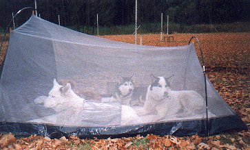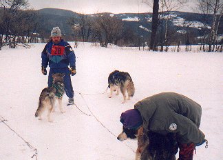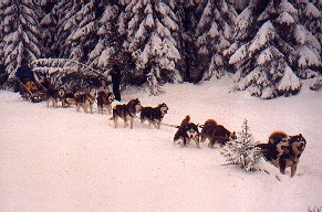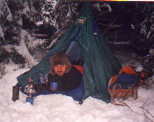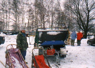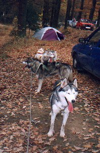 Po celodenní dřině, kdy jsme spřežení na poslední chvíli zachraňovali před pluhem, jsme dojeli na Přebuz. Tady jsme se začali připravovat na kempování. Dřeva bylo všude dost a tak jsme vyhrabali ohniště (nacházelo se asi tak metr pod úrovní sněhu) a konečně rozdělali oheň. Nakrmili jsme hafany a postavili stany. Začalo drobně mrholit. Druhý den nás vzbudilo společné vytí našich svěřenců. Asi nám tím chtěli říct, že už si odpočinuli a je čas jet dál. Zpočátku nebylo počasí nic moc, ale aspoň trochu přimrzl sníh. Přesto byli některé úseky silnice vytáté (nebo pro změnu zledovatělé).