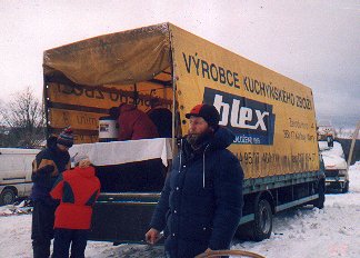 Z Milanovy Avie se udělal "bufet", kde se podával horký čaj pro závodníky. Zázemí nebylo nic moc, až k večeru jsme našli příhodnou hospůdku, kde jsme se osušili a najedli.