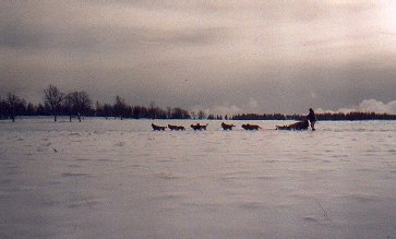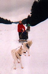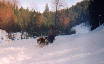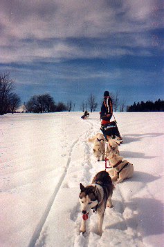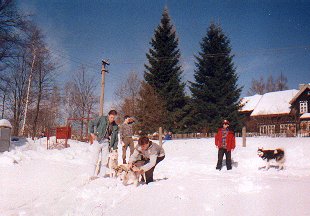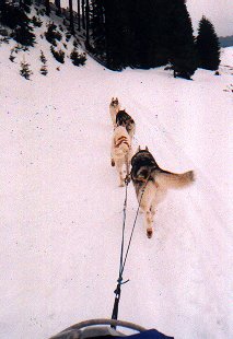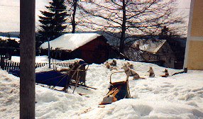 Ve středu, zatímco slézal sníh před očima, se to už nedalo vydržet. Všichni až na Dášu, která měla bohužel nastydlé hlasivky, jsme zapřáhli a vyjeli alespoň nalehko do okolí. Pořád pršelo. Hanka s Ivanem si půjčili tři Dášiny haskouny a mohli se konečně chvíli svézt. Po snědení bramboráků jsme se rozhodli, že v tomhle počasí nemá cenu někam jezdit a že přejezd (ač neradi) ukončíme. Jana, Líba a Roman odjeli domů, zůstal jen Ivan a Hanka. V pátek, kdy konečně přestalo pršet, si Milan s Ivanem rozdělili zbylé psy a rozhodli se jet, kam až to půjde. Během dne dojeli až k Meluzíně a v sobotu nastoupili kvůli nedostatku sněhu zpáteční cestu na Hřebečnou. Tak takhle skončil letošní přejezd. Příště musíme jet aspoň o měsíc dříve.