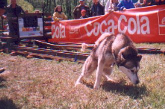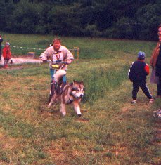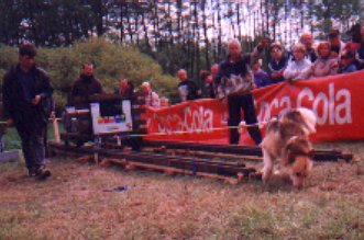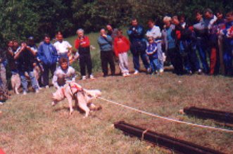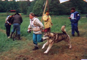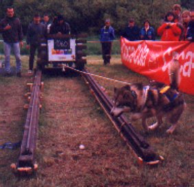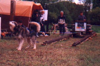 Druhý den byla soutěž pes + musher. Sestávala se z tahání pneumatiky, přeskakování překážek, zdolávání kladiny a pak se pes zapřáhl do koloběžky a v dost obtížném terénu se objelo celé cvičiště (na čas). Sešlo se i celkem dost diváků a to i přesto, že se letos hry konaly v kempu docela daleko od vesnice.