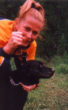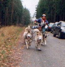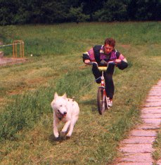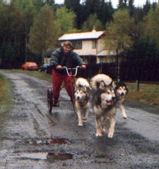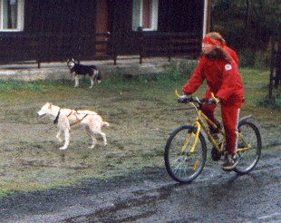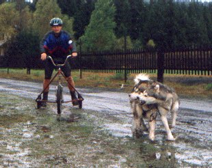 Martina s Britou absolvovaly s úspěchem třičtvrtě trati, ale pak se Brita rozhodla, že před koloběžku ji nikdo zapřahat nebude a snažila se kolečka aportovat. Ještě má tlamu špinavou od bláta.