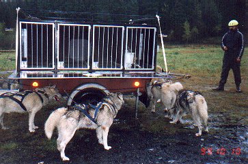 Toto auto je dělané jen pro psy (vejde se do něj 16 psů) a k nám ho přijel ukázat jeden Rakušan. Psy měl rádoby čistokrevné a agresivní.