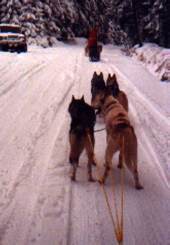 Poslední foto v zápřahu s Belinkou. Po tomto mašování darovali Šindelářovi Belu a Endyho kamarádovi do Pstruží. Jim se malamuti neustále prali a jejich kamarád po takovýchto psech hrozně toužil. Mají se u něj velmi dobře a Šindelářovi mají od té doby klid.