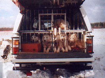 I takhle se dají převážet saňoví psi - veterinář by asi nesouhlasil.