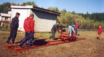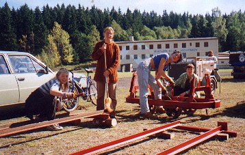 Po delší pauze jsme se společně opět sešli na Eduardu, abzchom si zajezdili a zároveň jsme přivezli z chalupy u Mariánských Lázní vozík a koleje na silové tahání. Rozhodli jsme se, že ho napevno zabudujeme na šikovném místě v areálu biatlonu a příští rok uspořádáme silové tahání.