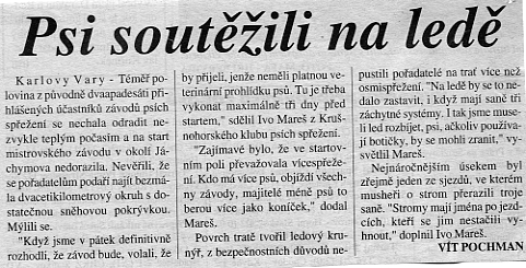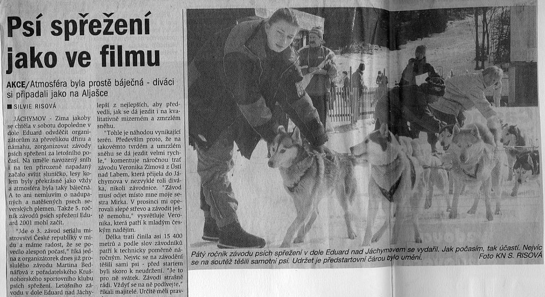 Začátek tohoto roku byl docela petrý. Milan Š. odjel na tři měsíce trénovat psí spřežení na Aljašku, takže jsme závody na Edíku organizovali bez něj. Letos nám příroda toho sněhu moc nenadělila a tak kdo měl ruce a nohy nosil sníh na problémové úseky trati z otevřeného prostranství před hospodou. Do poslední chvíle jsme se rozhodovali, jestli se závod dá nebo nedá jet. Nakonec jsme usoudili, že za tu starost a obětování to stojí.