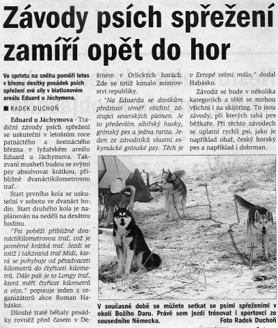 Při večerním posezení jsme se dohodli, že tratě na Eduardu začínají být pro větší spřežení dost náročné a nebezpečné (s čímž se bohužel nedá nic dělat) a tak že už se na Eduardu nebudou jezdit mistrovské závody. Na rok 2002 tak vypíšem jen atypický závod. Tento rok bude poslední sprint na Eduardu.