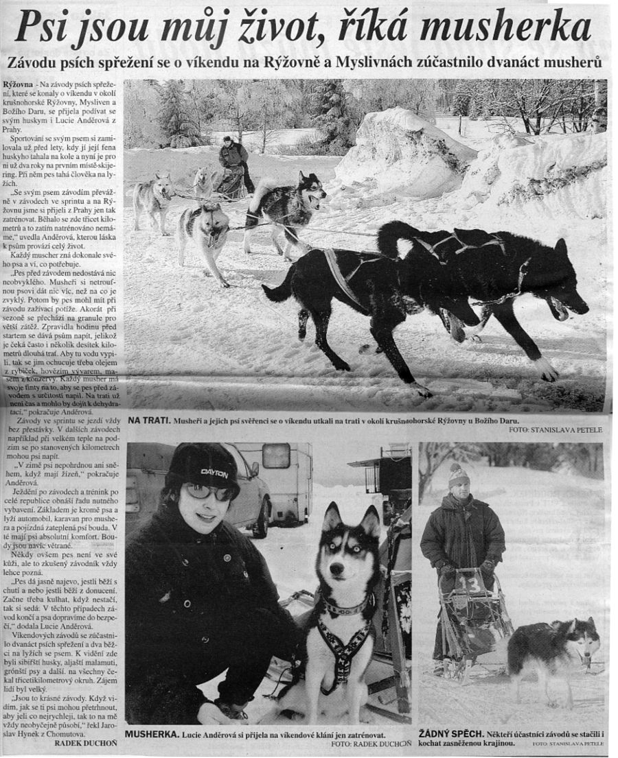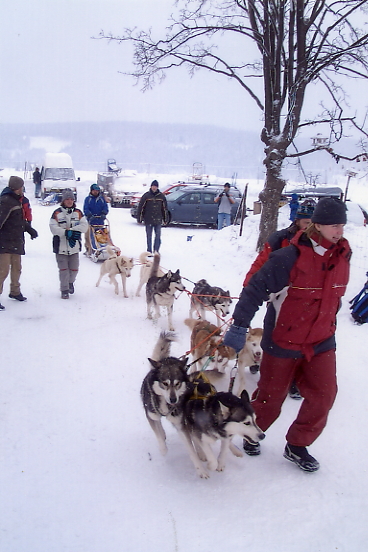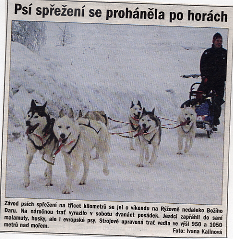.......... a proto díky řediteli závodu Milanovi Šindelářovi za vyběhání všech neskutečných povolení a stmelení celého týmu (slepička to měla určitě jednodušší), Díky Vaškovi Krásnému, který se postaral o dopravu veterináře, díky majiteli pensionu Romanovi Ottovi, který musel někdy skousnout drsnější chování musherů k jeho majetku. Díky majiteli nového Skidoo, na kterém jsem nalítal (vždy do 5000 ot.) skoro 200 km. Díky doktorům, kteří mi odstřihávali odcházející kousky palce mimo ordinační hodiny a sestřičkám, kteří mně ho (ten palec) s maximální péčí převazovali. Díky mojí ženě, která mi mlčky podávala acylpirín, čaj s medem a citronem.