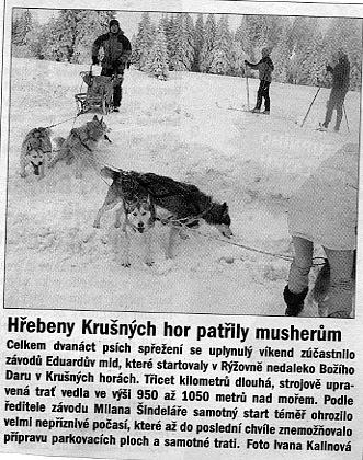 Dostat frézu na úpravu parkoviště ihned po kalamitě je od Milana hrdinský výkon. Na závodě je více pořadatelů, než závodníků. Ještě že mezi závodníkama máme jednoho němce, což kladně kvitují zahraniční novináři ze sasských novin. Náš závod se jejich očima okamžitě stává mezinárodním a prý je to pěkný příklad příhraniční spolupráce ve sportu. Dělají spoustu akčních fotek a říkají, že v článku z nás udělají prestižní závod. (Když už sem jeli na výlet, tak to musí mít u šéfa odpovídající úspěch, ne?) Třeba nám to příští rok pomůže při shánění peněz.