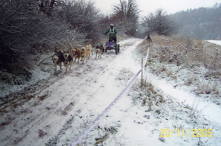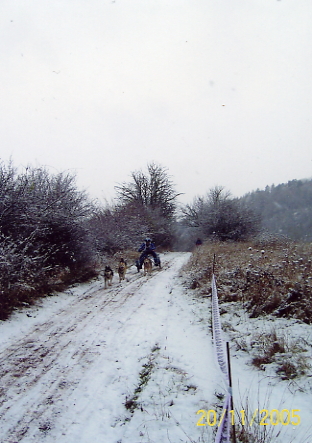 Trať nám na poslední chvíli (pátek večer a sobota ráno) demolují svými pluhy všudypřítomní lesáci, kteří asi hodlají zrovna v tuto sobotu večer závést všechny krmelce v kraji. Naštěstí jejich nedokonalá technika nechává na cestách asi 1 cm ztvrdlého sněholedu. Přejezdy vzniklých mantinelů musíme upravit rychle ručně. Jeje. - To nám zase musheři nadají - říkáme si. Co dělat lesníci jsou páni lesa a nikdy nezklamou.