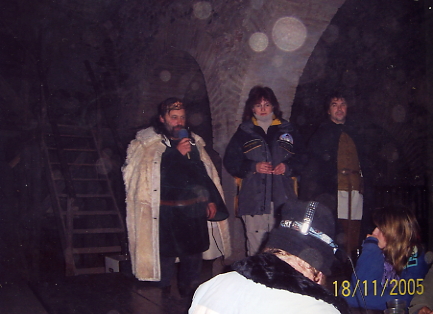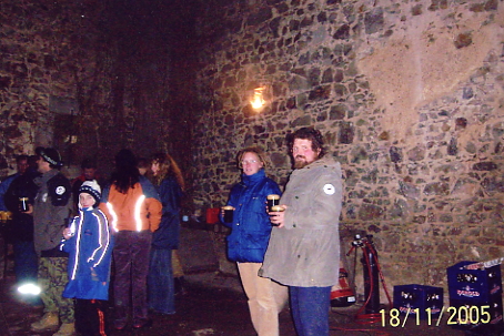 Večer bylo pro mašéry připraveno posezení s hradním pánem na hradě Točník. Na grilu se peklo vepřové maso a pivo bylo zdarma.